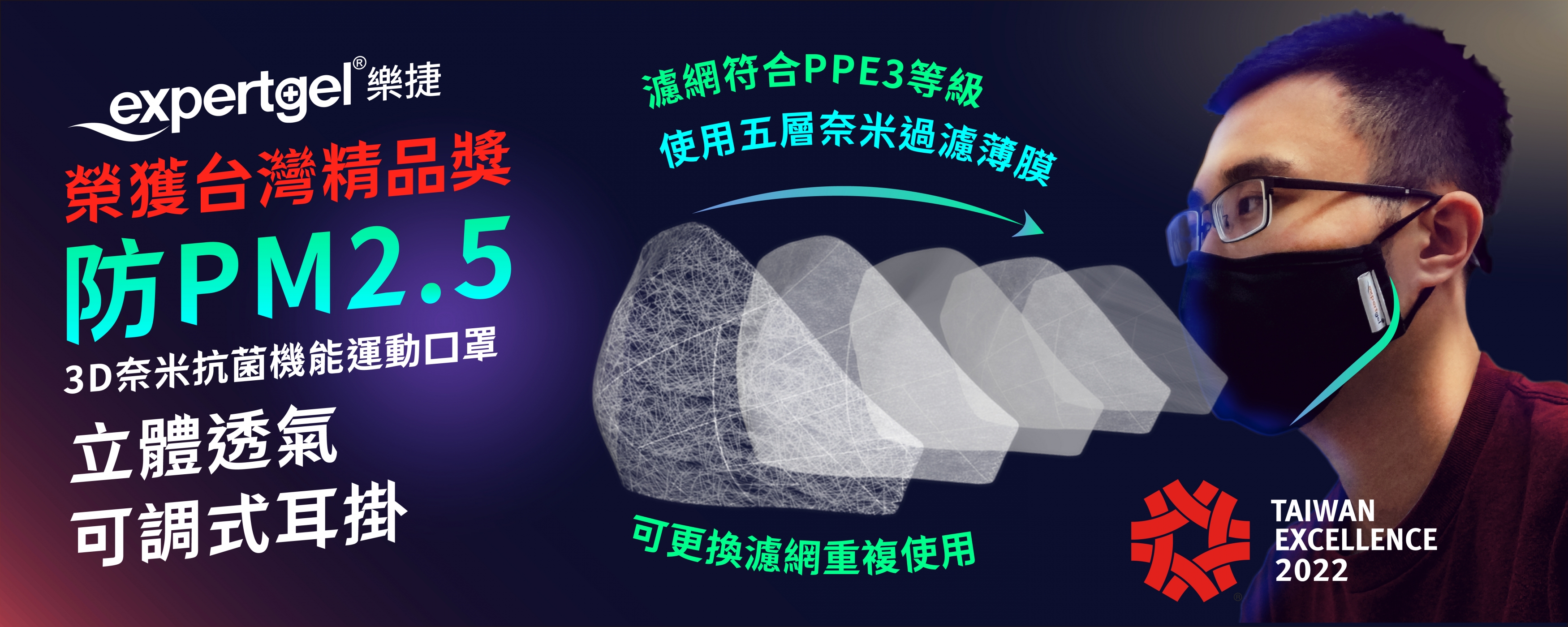 3D立體奈米抗菌機能口罩