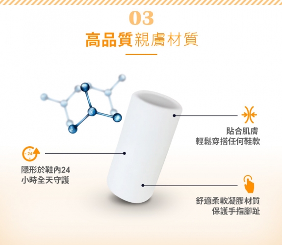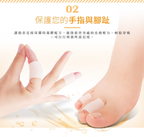 1. 柔軟凝膠能舒緩手指/腳趾所承受的摩擦與壓力,如:甲溝炎。