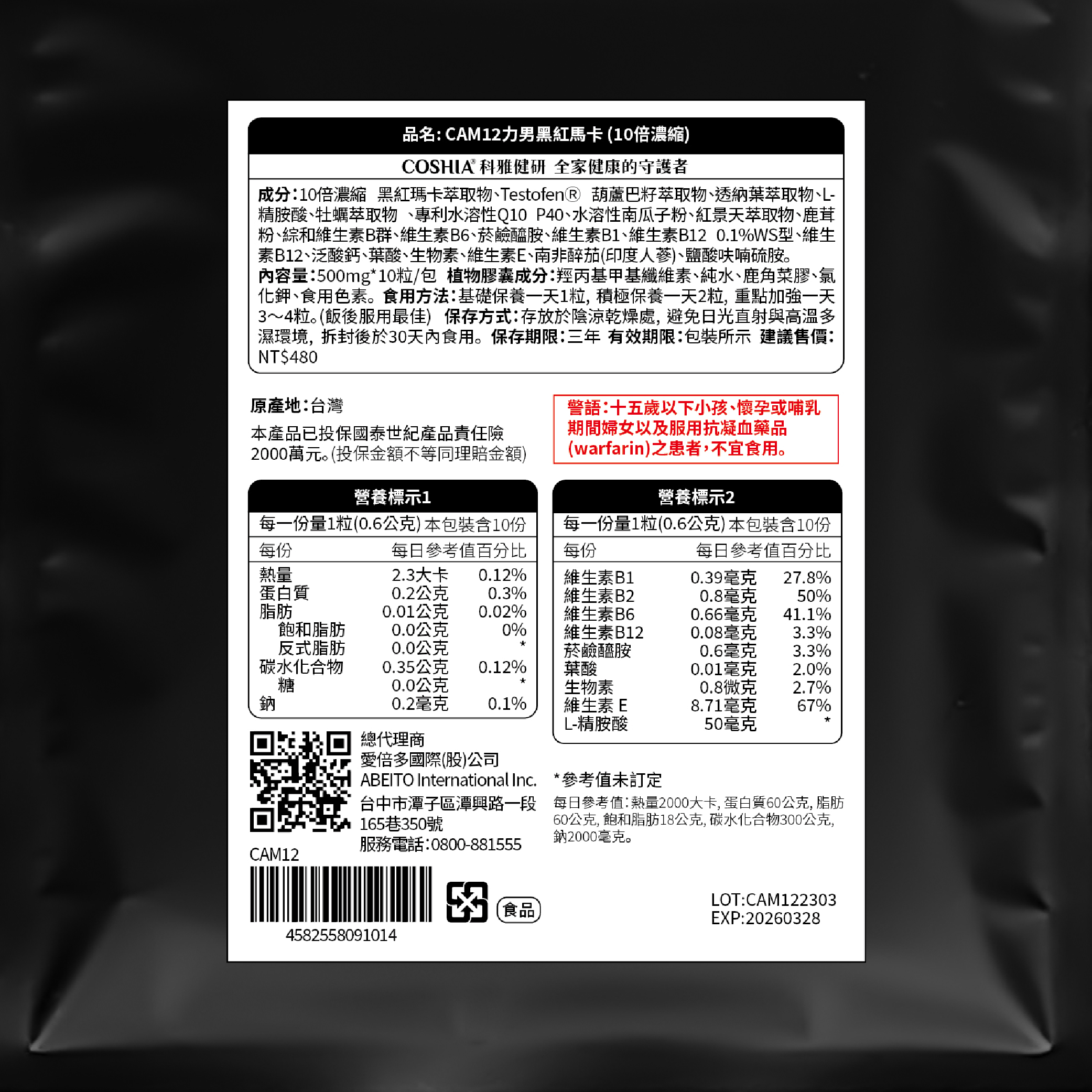 【COSHIA科雅健研】CAM12力男有機黑紅馬卡
