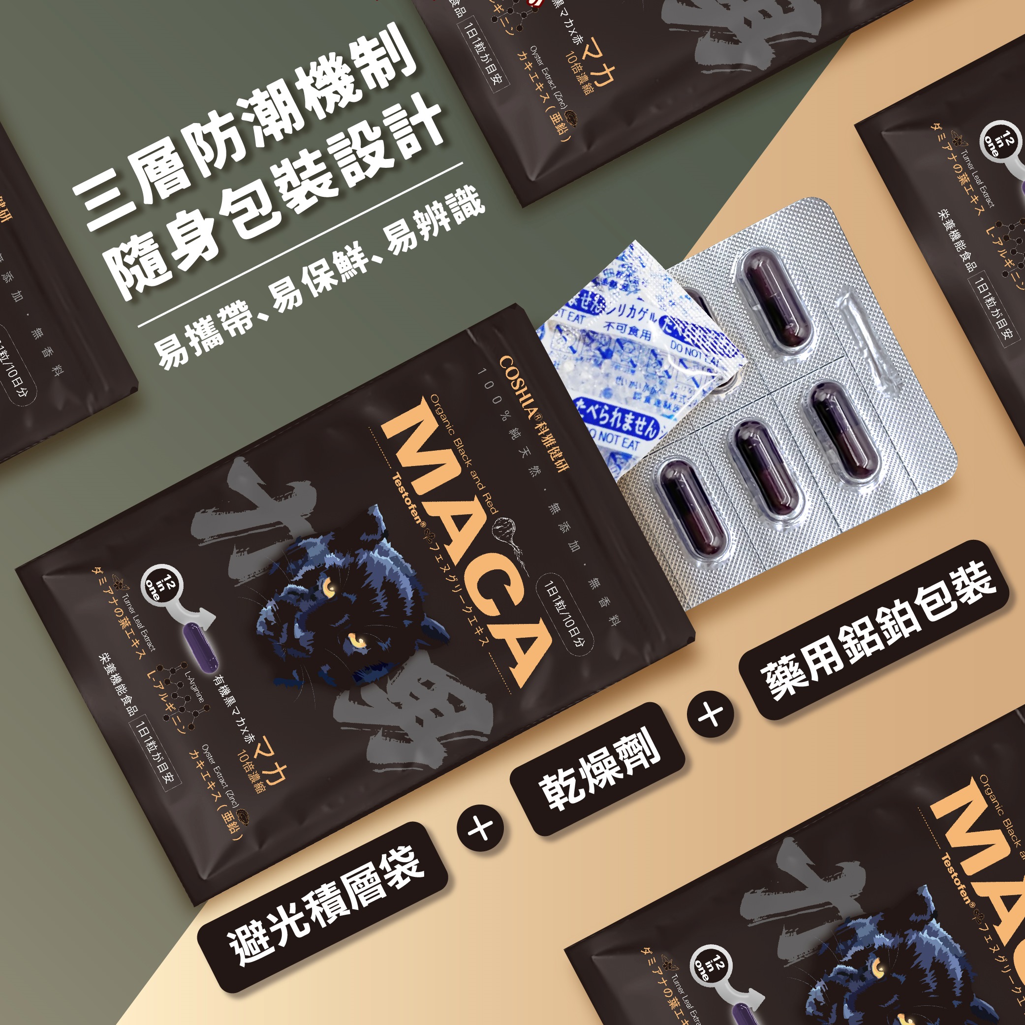 ✔ 10倍濃縮 有機黑紅瑪卡萃取物,一粒等於1500mg 黑紅瑪卡營養